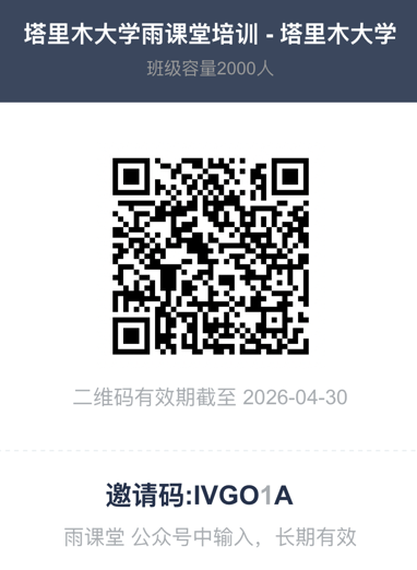 1.微信扫码加入雨课堂班级(二维码有效期为1个月,邀请码永久有效)。